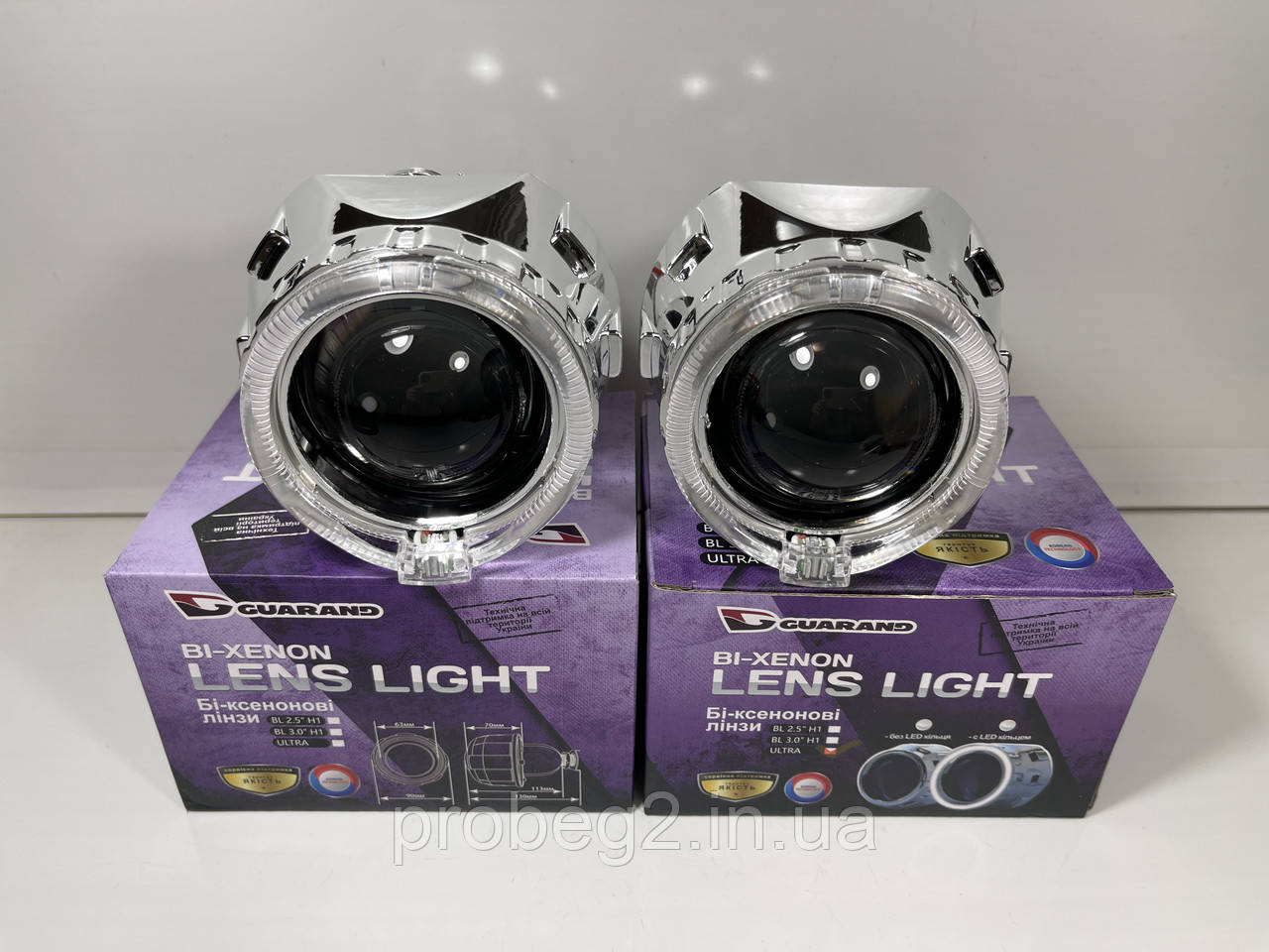 Комплект лінз 2.5 Guarand Ultra з ангельськими очками — ідеальний вибір для водіїв, які прагнуть покращити якість освітлення та надати автомобілю стильного вигляду. Ці лінзи забезпечують чітке, рівномірне світло, що робить нічне водіння безпечнішим, а дорогу — більш видимою навіть у складних умовах. Ангельські очки додають автомобілю сучасного, преміум-дизайну, підсвічуючи фари приємним та стильним світлом, яке одразу привертає увагу. Завдяки використанню сучасних технологій, лінзи Guarand Ultra гарантують стабільність освітлення, довговічність і енергоефективність. Це ідеальний комплект для тих, хто хоче поєднати естетику і функціональність у своєму автомобілі. Вважаємо, що такий комплект буде гарним та надійним вкладенням для вашого автомобіля.